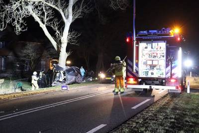 Bestuurder (27) overleden bij ernstig eenzijdig ongeval: auto klapt frontaal op boom