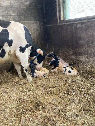 zondag 13 maart 2022, 11:27 uurJe wint er geen geld mee. Toch werd melkveehouder Sjaak Wijnen uit Wanroij zaterdag verrast met een zeldzaam lot uit de loterij. Een van zijn koeien baarde een drieling. Een kans, aldus kenners, van 1 op 8 miljoen.