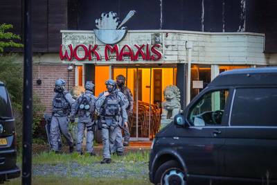 Zwaar bewapend arrestatieteam valt oud restaurant Wok Maxis in Warnsveld binnen