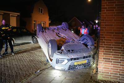 WASPIK – Een auto is woensdagavond, vlak voor middernacht, over de kop geslagen op de Schotse Hooglanderstraat in Waspik. Het scheelde niet veel of het voertuig had tegen een huis gebotst. De bestuurster raakte gewond.