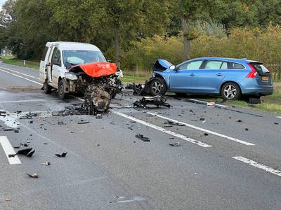 Motorblok vliegt uit Post NL busje bij zwaar ongeluk tussen Raalte en Wesepe, N348 compleet dicht