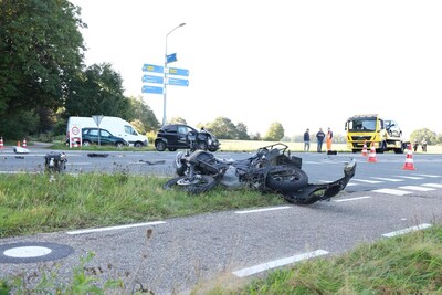 Een auto en een motor zijn dinsdagochtend rond negen uur hard met elkaar in botsing gekomen. Het ongeluk gebeurde op de kruising van de Raalterweg (N348) met de Heetenerdijk in de buurt van Wesepe.