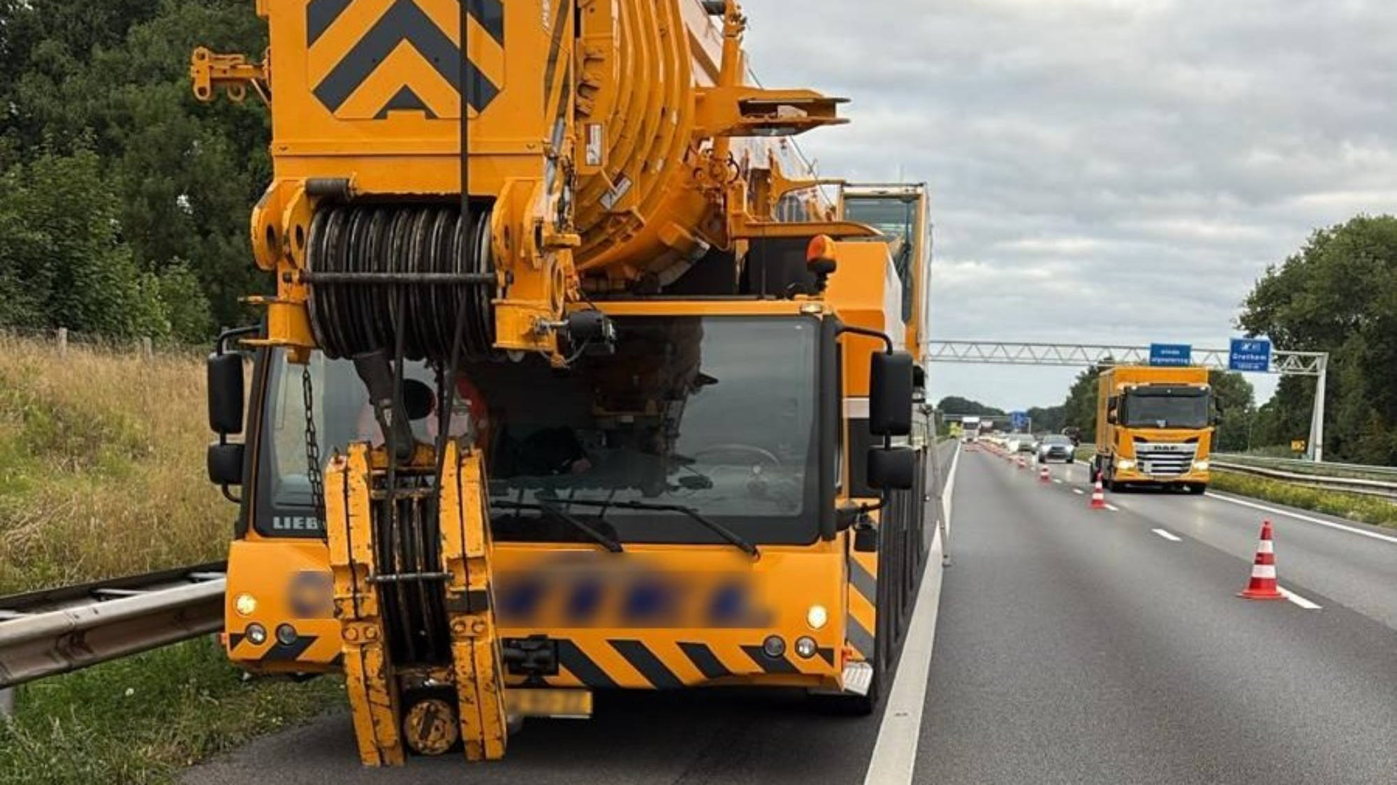 Vertraging op A2 bij Wessem door kapotte kraanwagen