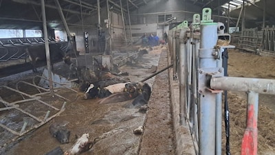 Veertig koeien door stalvloer gezakt bij boerderij: ‘Een puzzel om ze eruit te krijgen’