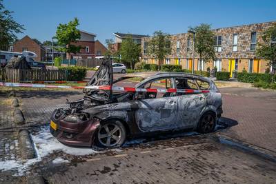 Kind op tijd uit brandende auto gered in Westervoort, van voertuig is weinig over
