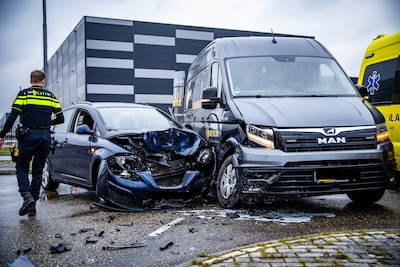 Gewonde en veel schade door botsing tussen auto en bestelbus