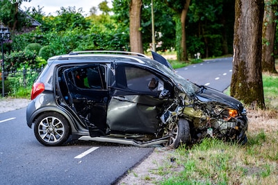 Auto loopt zware schade op na botsing met boom