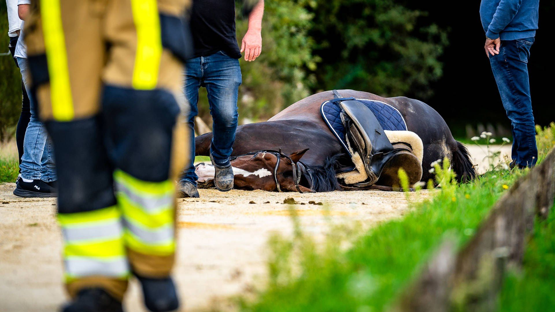 Paard raakt zwaargewond na valpartij: dier ingeslapen, ruiter zat klem