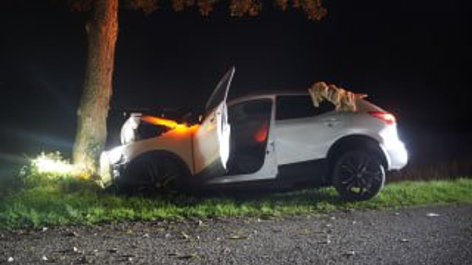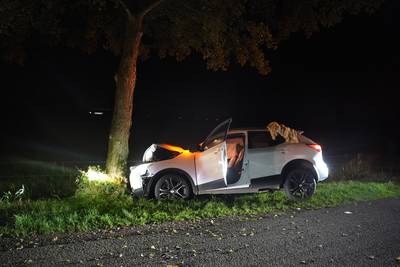 Auto botst bij Wijhe tegen boom, bestuurder gewond naar ziekenhuis en flink wat blikschade