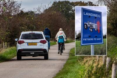 Boer claimt voorrang op smalle weg en plaatst zelf bord: ‘Landweg, fietsers te gast’