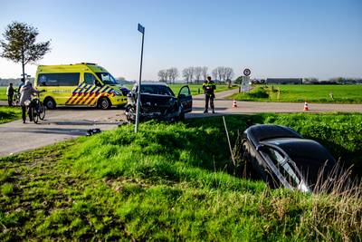Auto belandt in sloot na frontale botsing, weg tijdelijk afgesloten