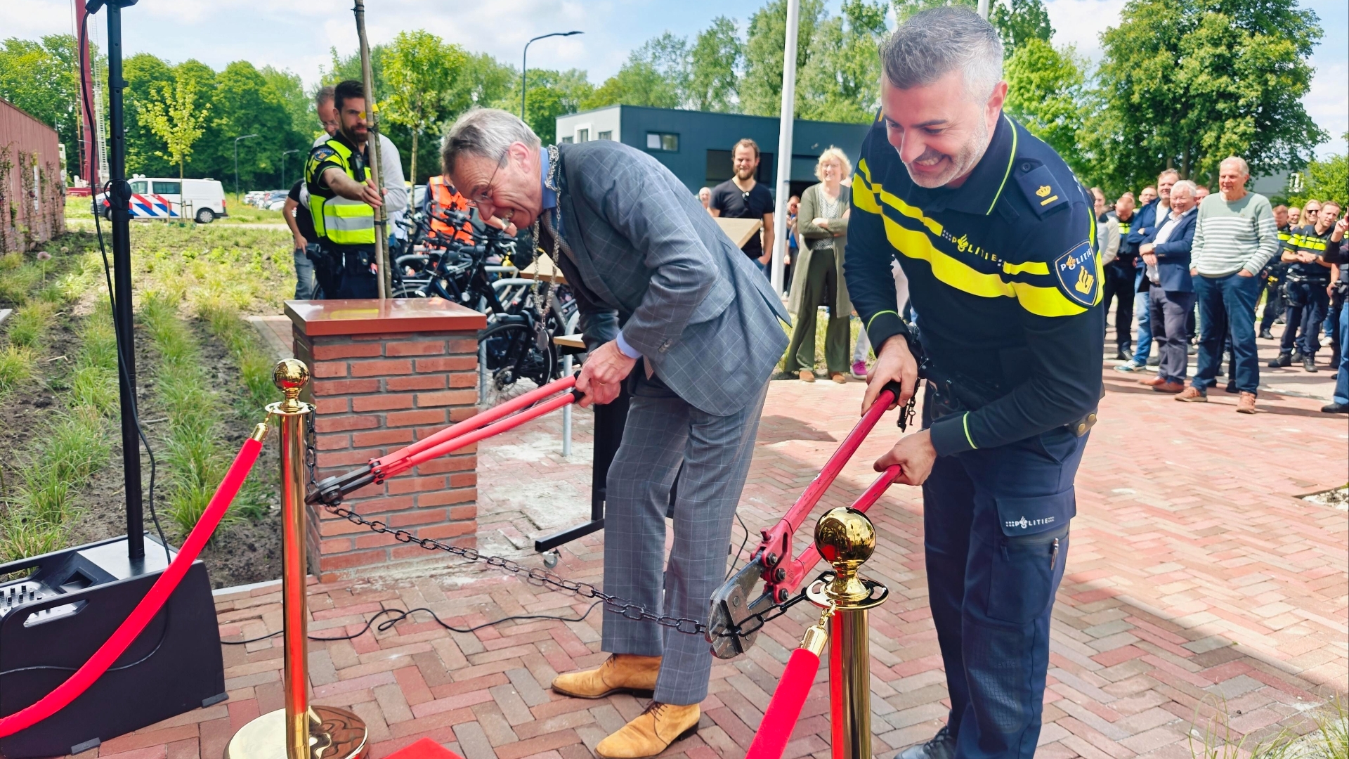 De politie opende woensdag in Winsum een nieuw politiebureau. Burgemeester Henk Jan Bolding en teamchef Rahim Sahin, die in stijl per helikopter arriveerden, knipten een stalen ketting door.