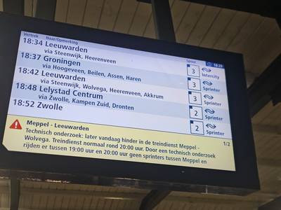 Tussen Meppel en Steenwijk rijden tot negen uur vanavond geen treinen. Dat komt door 'technisch onderzoek', meldt NS.