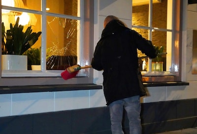 Ramen van restaurant kapot door ontplofte mortier