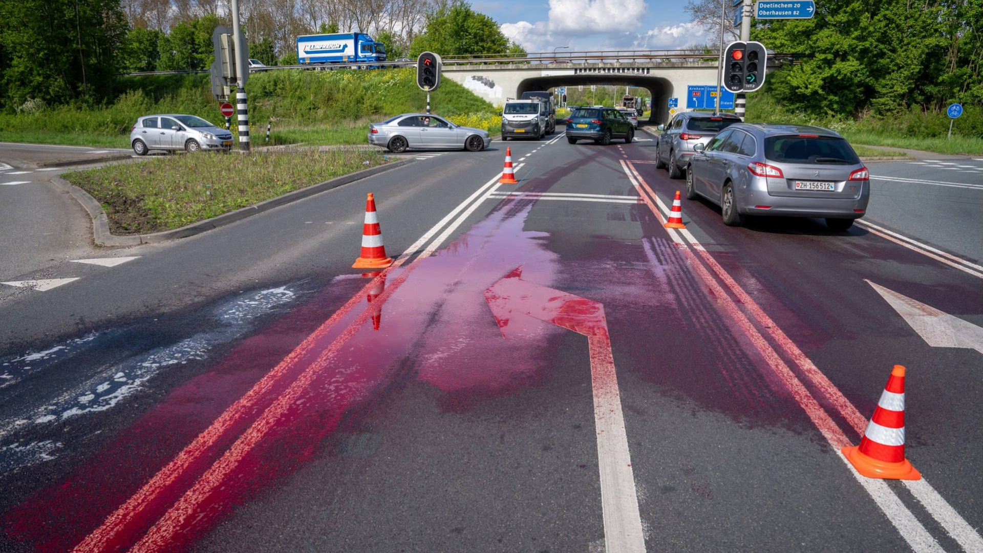 Vrachtwagen verliest honderden liters bloed: kruispunt bij A12 rood gekleurd