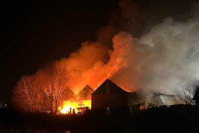 Grote uitslaande brand bij vier loodsen, NL Alert verzonden in omgeving