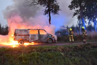 Busje vliegt al rijdend in brand in Zuilichem