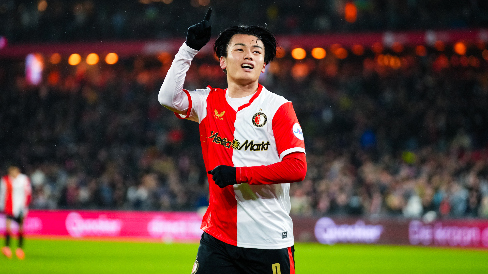 Hattrickheld Ueda schiet Feyenoord met ruime voorsprong de rust in