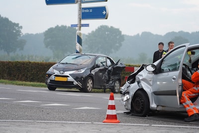 Brokstukken op kruising na botsing tussen twee auto’s bij Alphen en Gilze