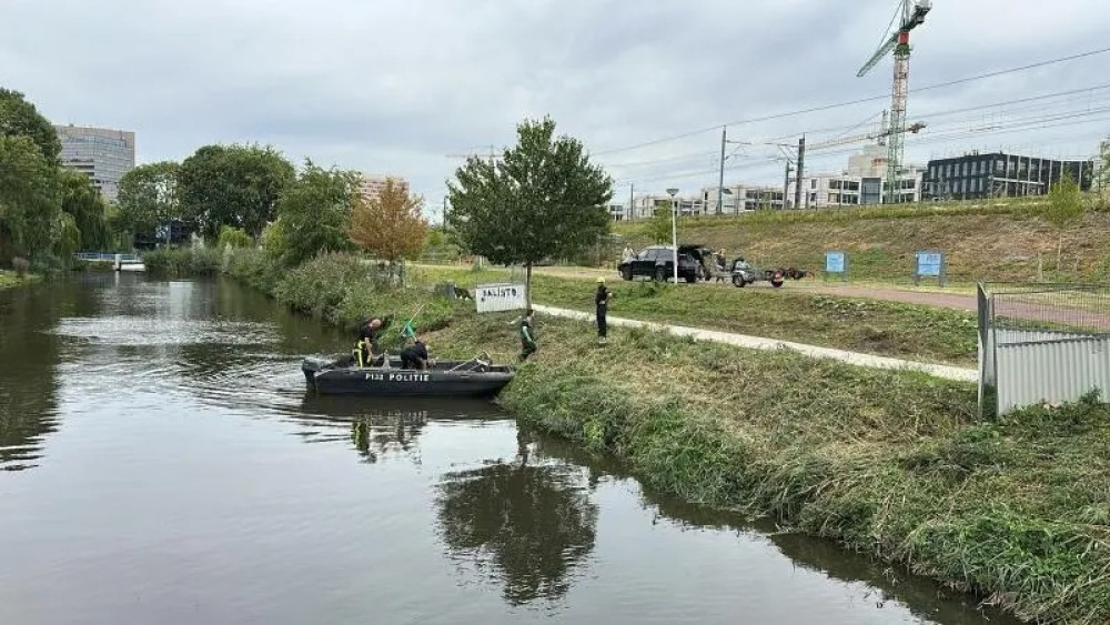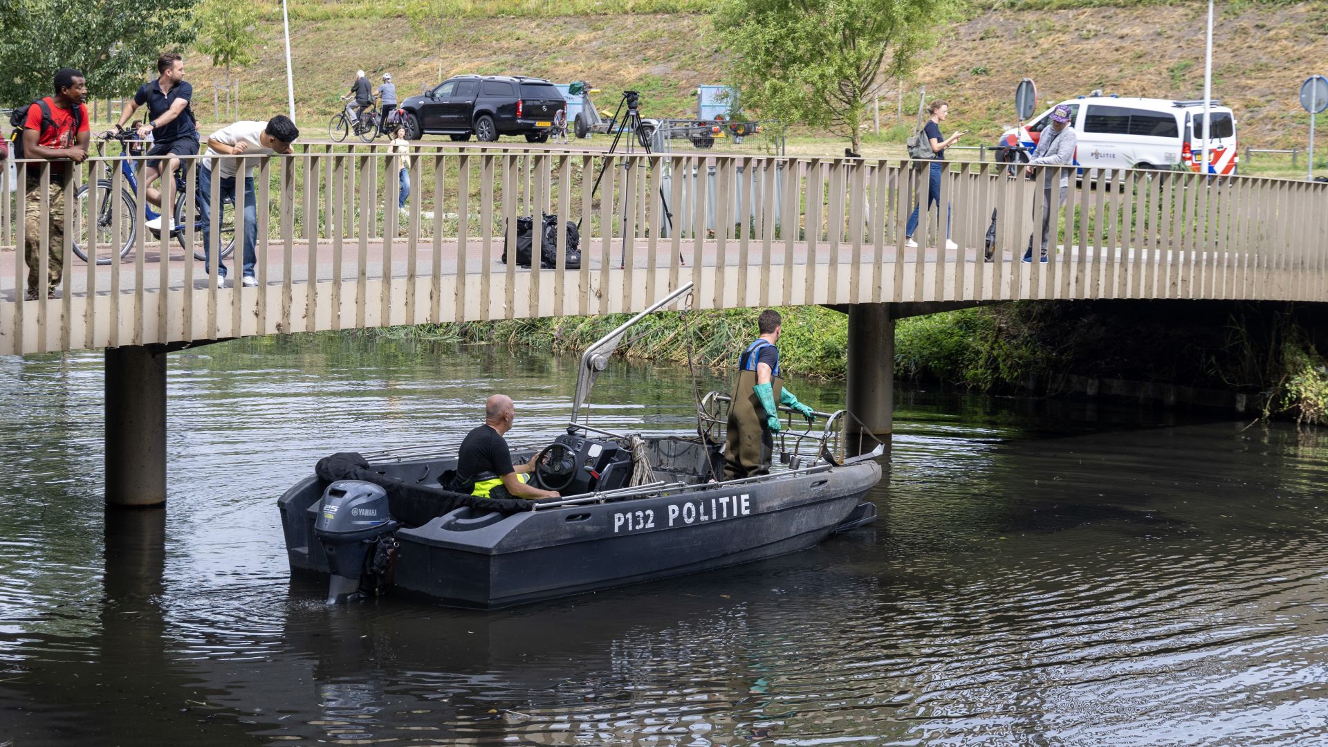 Politiemensen zijn dinsdagmiddag aan het dreggen in het water achter een pand van het Centraal Orgaan opvang asielzoekers (COA) in Amsterdam. Dat is de locatie waar de man verbleef die wordt verdacht van het doden van de 17-jarige Lisa vorige week.