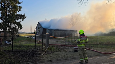 Brand in schuur met hooibalen, omgeving afgezet vanwege asbest