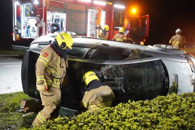Op de Zevenaarseweg in Angerlo is een automobilist in de nacht van vrijdag op zaterdag met de schrik vrijgekomen. De bestuurder van het voertuig raakte in de slip waarna de auto in een berm op zijn zijkant tot stilstand kwam.