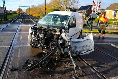 Bestelbus ramt trein in Apeldoorn: ‘Blij dat ik er ongeschonden ben uitgestapt’