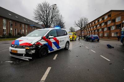 Politiewagen met spoed moet uitwijken en komt hard in botsing met auto op kruispunt in Apeldoorn