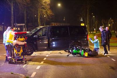 Een motorrijder is vrijdagavond in Apeldoorn vol in de flank van een taxibus gereden en daarbij gewond geraakt.