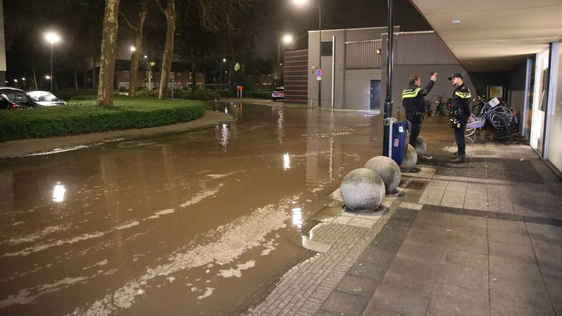 Straat verandert in rivier door leidingbreuk
