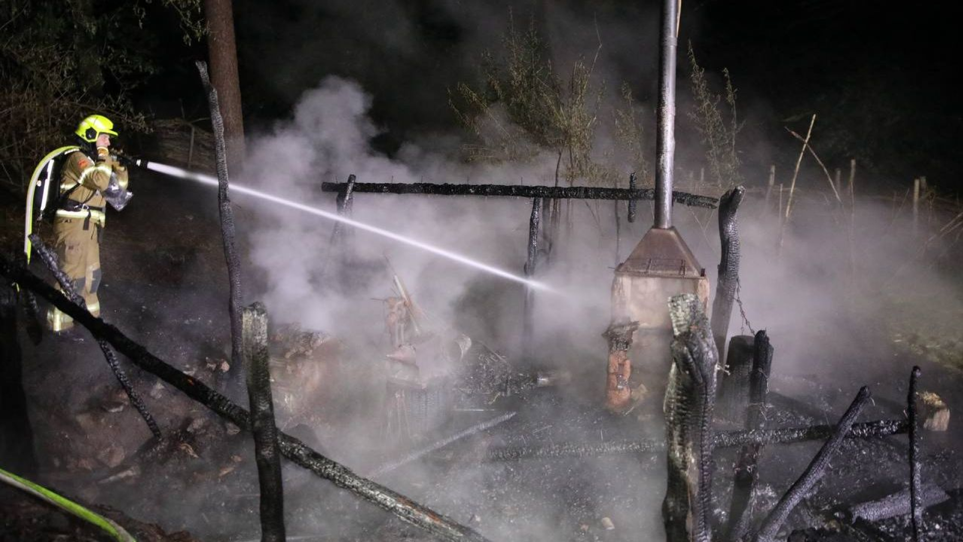 Bijzondere woningbrand buiten Apeldoorn: ‘prehistorische’ hut vernield door vlammen