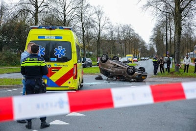 Auto belandt op de kop na botsing in Apeldoorn: bestuurder mee naar het ziekenhuis