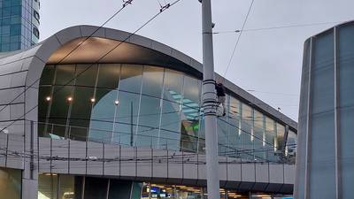 Man klimt in trolleymast, busverkeer ernstig ontregeld, hulpdiensten massaal op Stationsplein