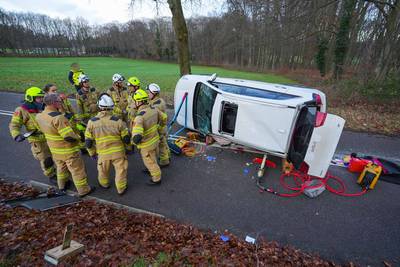 Bestuurder met arm klem onder eigen auto na ongeval