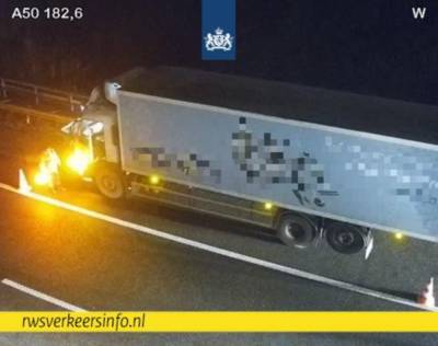 Vrachtwagen zonder diesel zorgt voor flinke vertraging op A50 tussen Apeldoorn en Arnhem