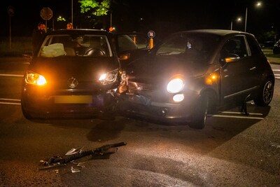 Twee auto's zijn in de nacht van dinsdag op woensdag op elkaar geklapt op de kruising van de Monnikensteeg en de Zaslaan in Arnhem. Beide voertuigen liepen grote schade op, bij de ene auto klapten de airbags uit.
