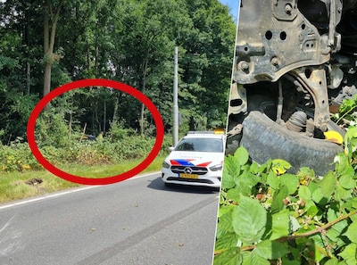 De inzittenden zijn door het oog van de naald gekropen. Dat meldt de politie over een opmerkelijk ongeval in Arnhem. De politie deelt woensdag een foto waarop de auto, die van de weg af schoot en in de bosjes verdween, nauwelijks te zien is in de struiken langs de weg.