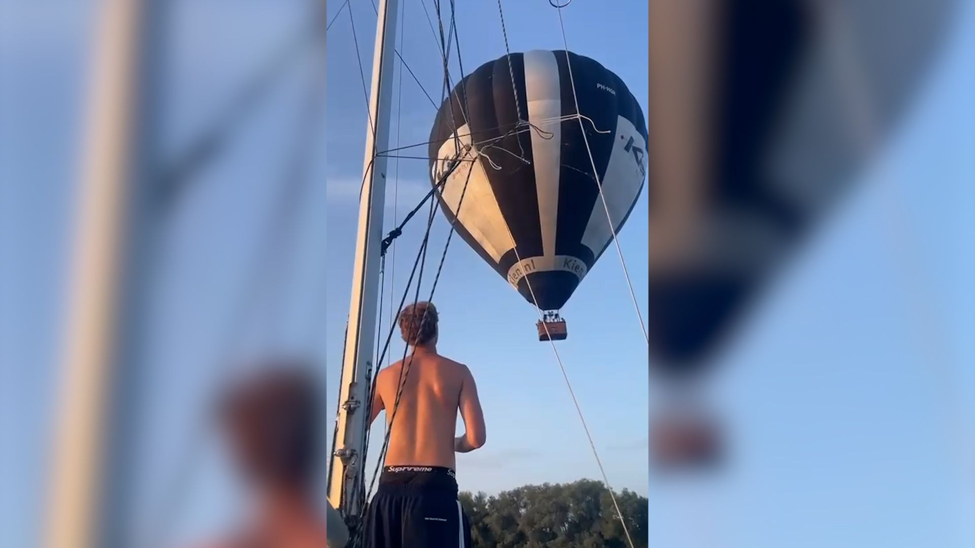 KIJKEN | Luchtballon gaat laag over zeilbootje: 'Gewoon bizar'