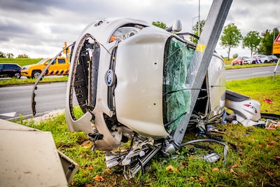Ernstig ongeval op Pleijroute: bestuurder komt gekanteld tegen flitspaal en moet naar het ziekenhuis
