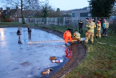 Twee jongetjes zijn woensdagmiddag door de brandweer van het ijs gehaald langs de Dennenweg in Arnhem. Met een ladder werd een reddingsactie op touw gezet, waarna de jongens weer op de kant kwamen.