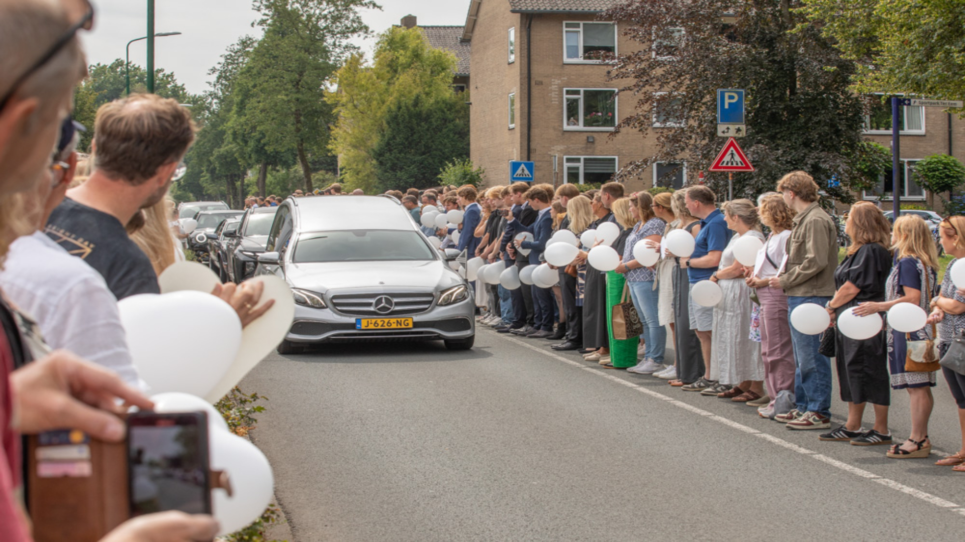Met witte papieren harten en heel veel witte ballonnen is vandaag in Baarn afscheid genomen van de 19-jarige Simo van Barneveld. Hij overleed ruim een week geleden bij een verkeersongeluk in Eindhoven.