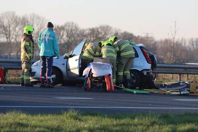 Persoon raakt bekneld in auto na ongeluk op A30 bij Barneveld, weg volledig afgesloten