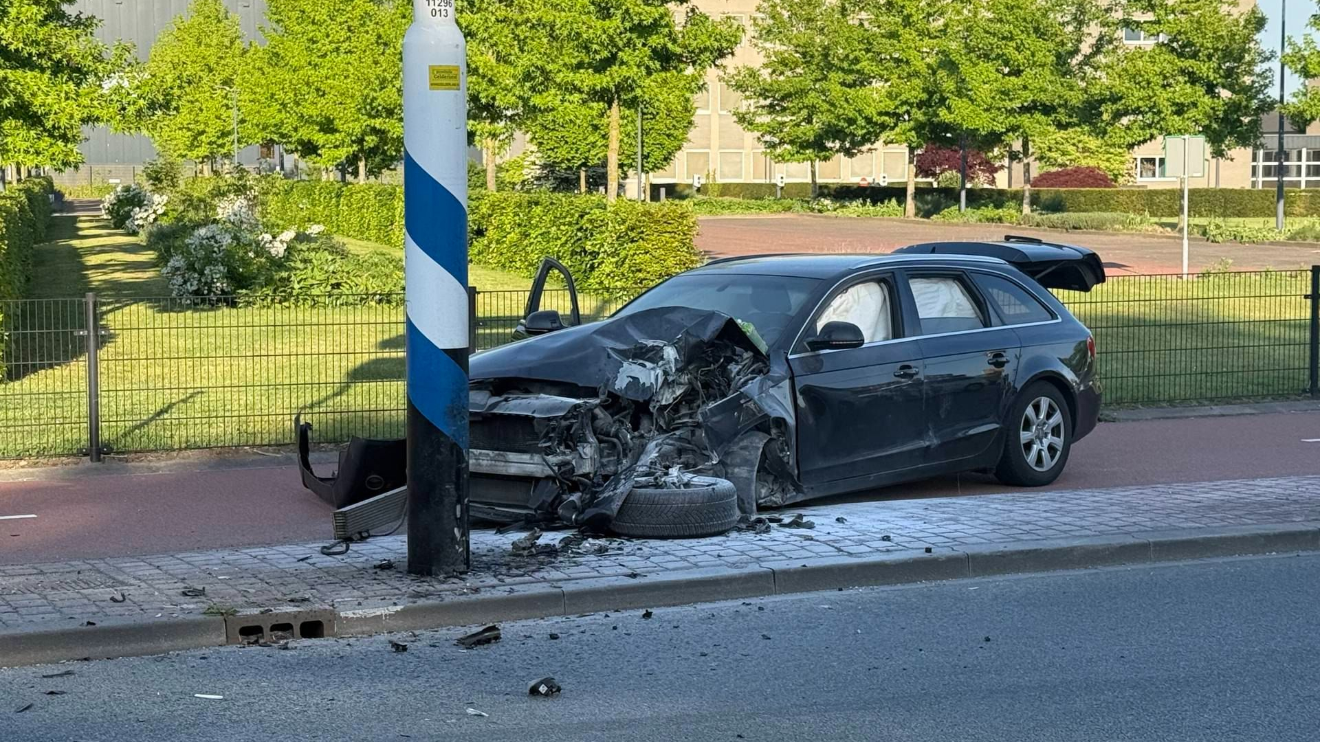 Een bestuurder is zaterdag met de auto tegen een verkeerspaal gebotst in Barneveld. De auto raakte daarbij total-loss.