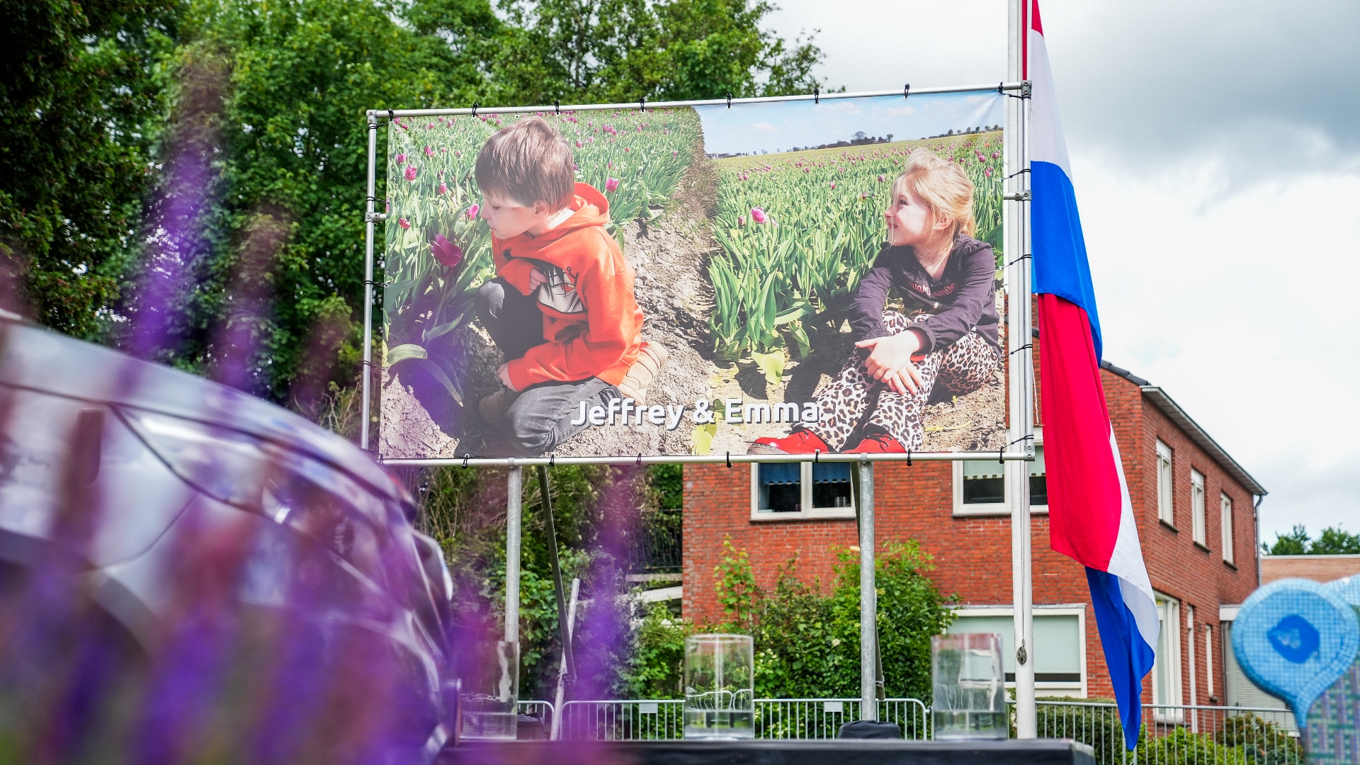 Herdenking Jeffrey en Emma in Beerta: eerbetoon met veel knuffels, bloemen en vooral tranen