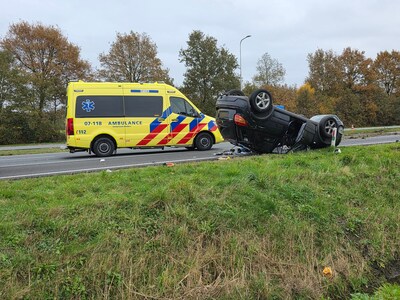 Auto slaat over de kop en komt op andere weghelft terecht