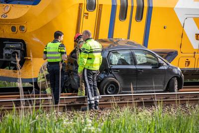 Video | Auto van spoor getild na botsing met trein in Bergen op Zoom