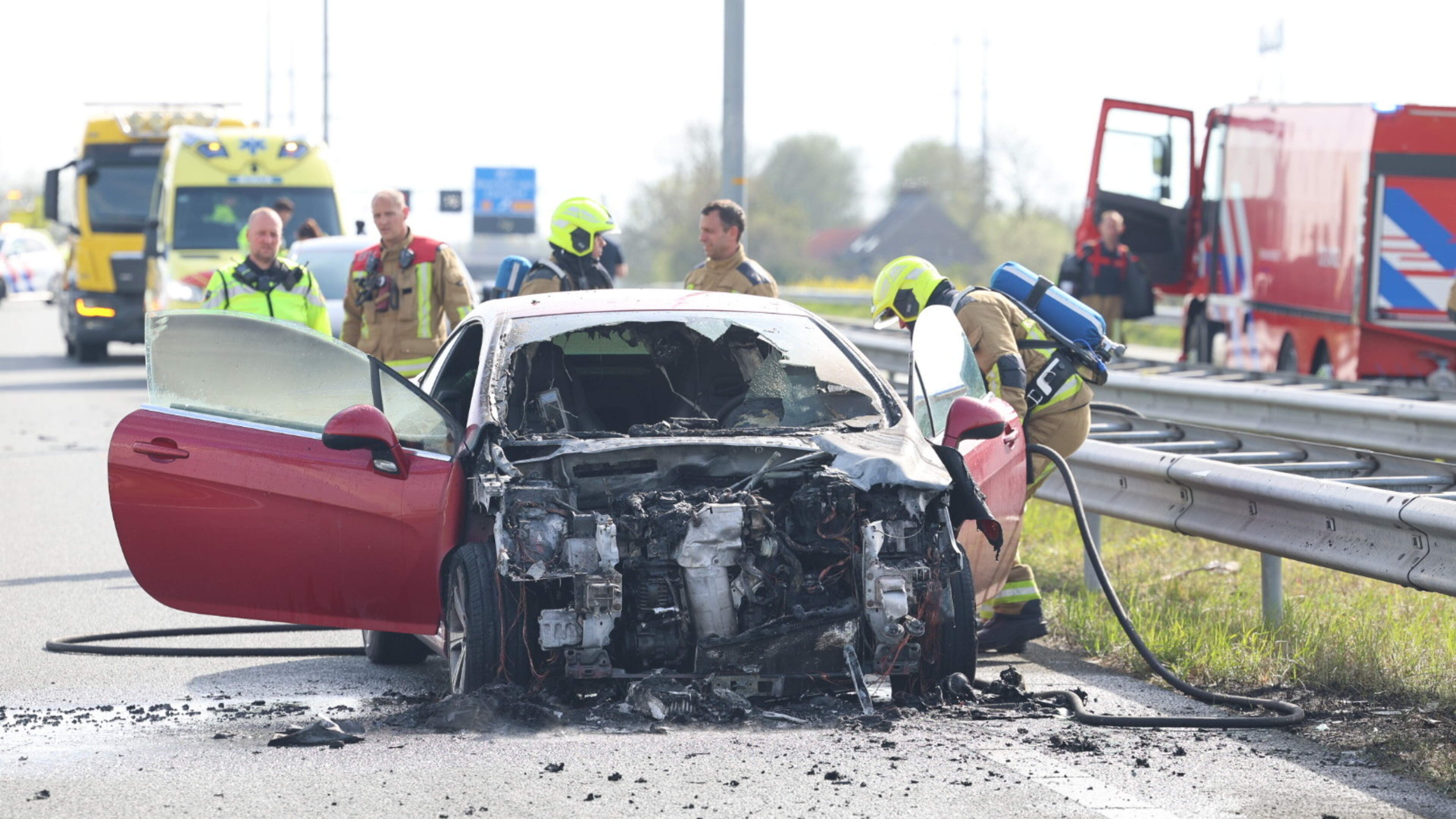 Flinke file op A9 omdat auto in brand vliegt na ongeluk