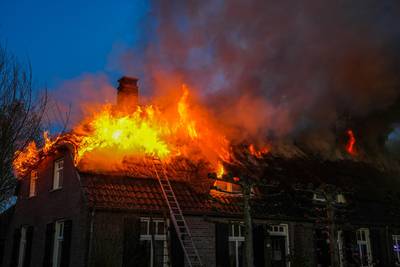 Grote brand verwoest woonboerderij met rieten dak, hond op tijd gered
