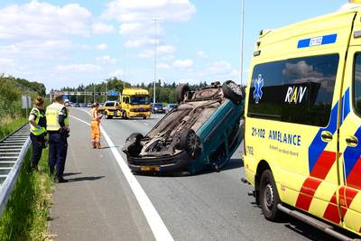 BOXTEL - Zondagmiddag is er op de A2 bij Boxtel een auto op zijn kop beland na een eenzijdige aanrijding. De hulpdiensten waren snel ter plaatse.