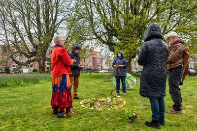 BREDA - Vlak voordat Lisette de Jongh uit Breda met het afscheidsritueel wil beginnen, begint het steeds harder te regenen. Zelfs de weergoden huilen om de kastanjebomen, merkt iemand op. Drie van de vier beeldbepalende bomen op de rotonde van de Baronielaan worden deze week weggehaald. Ze zijn stervende.
